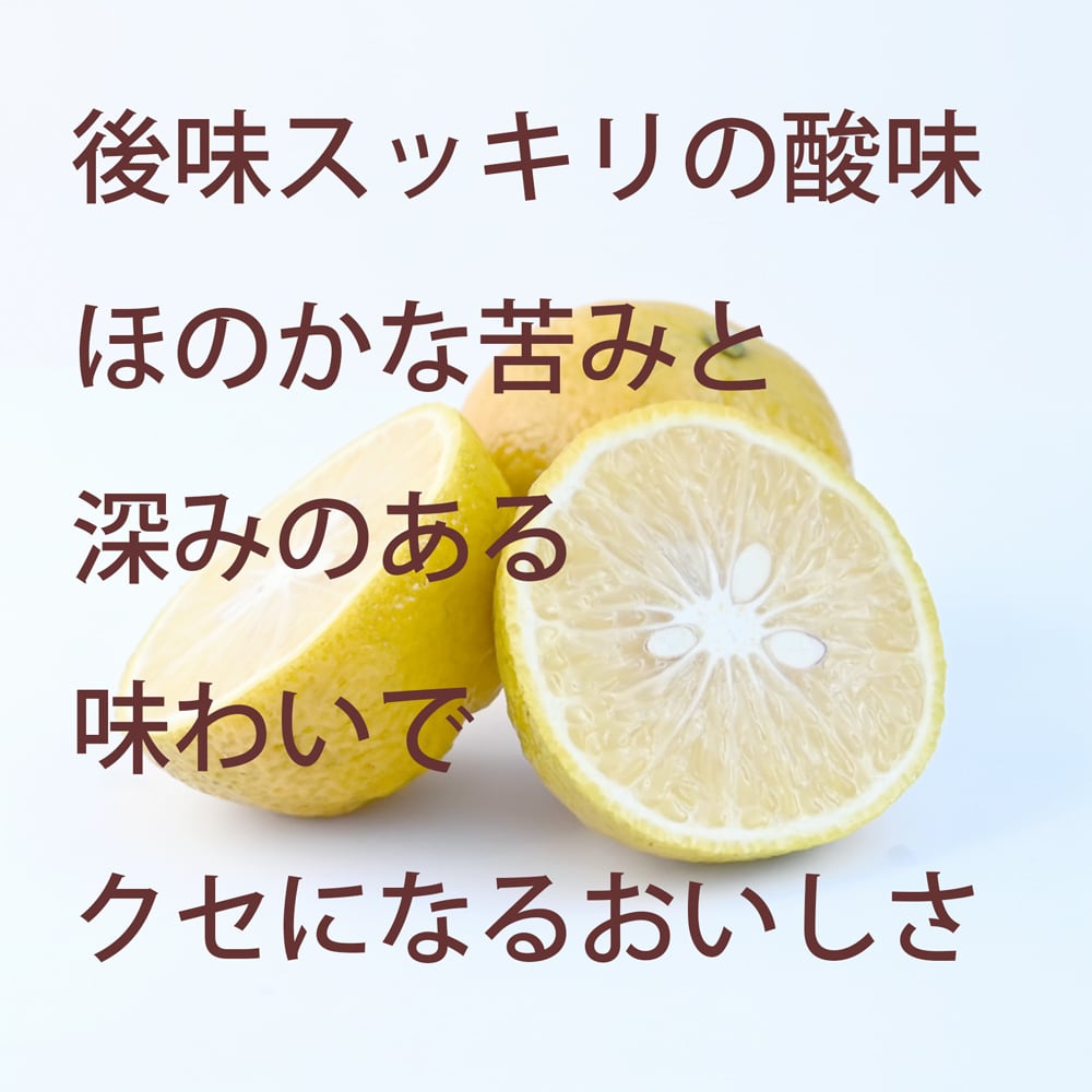 マイヤーレモンのように酸味がやわらかく香り豊かですが、さらにユズやカボスを思わせる爽快な香りと、クセになる奥深い酸味を持っています。
